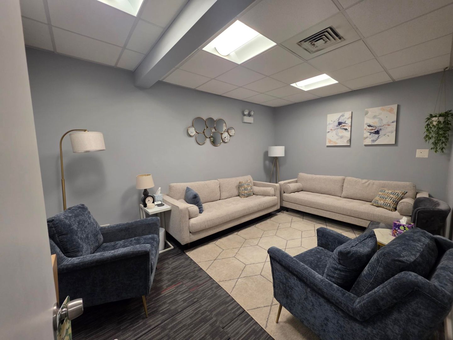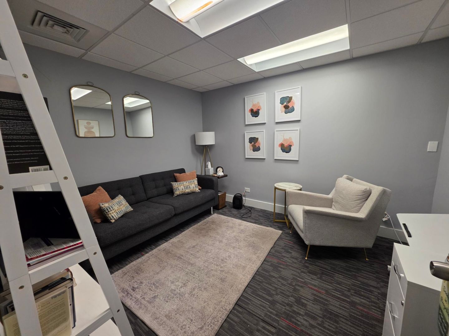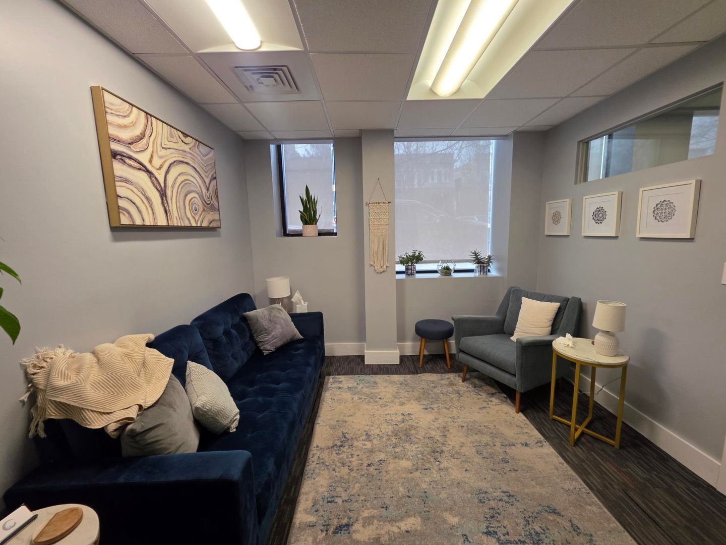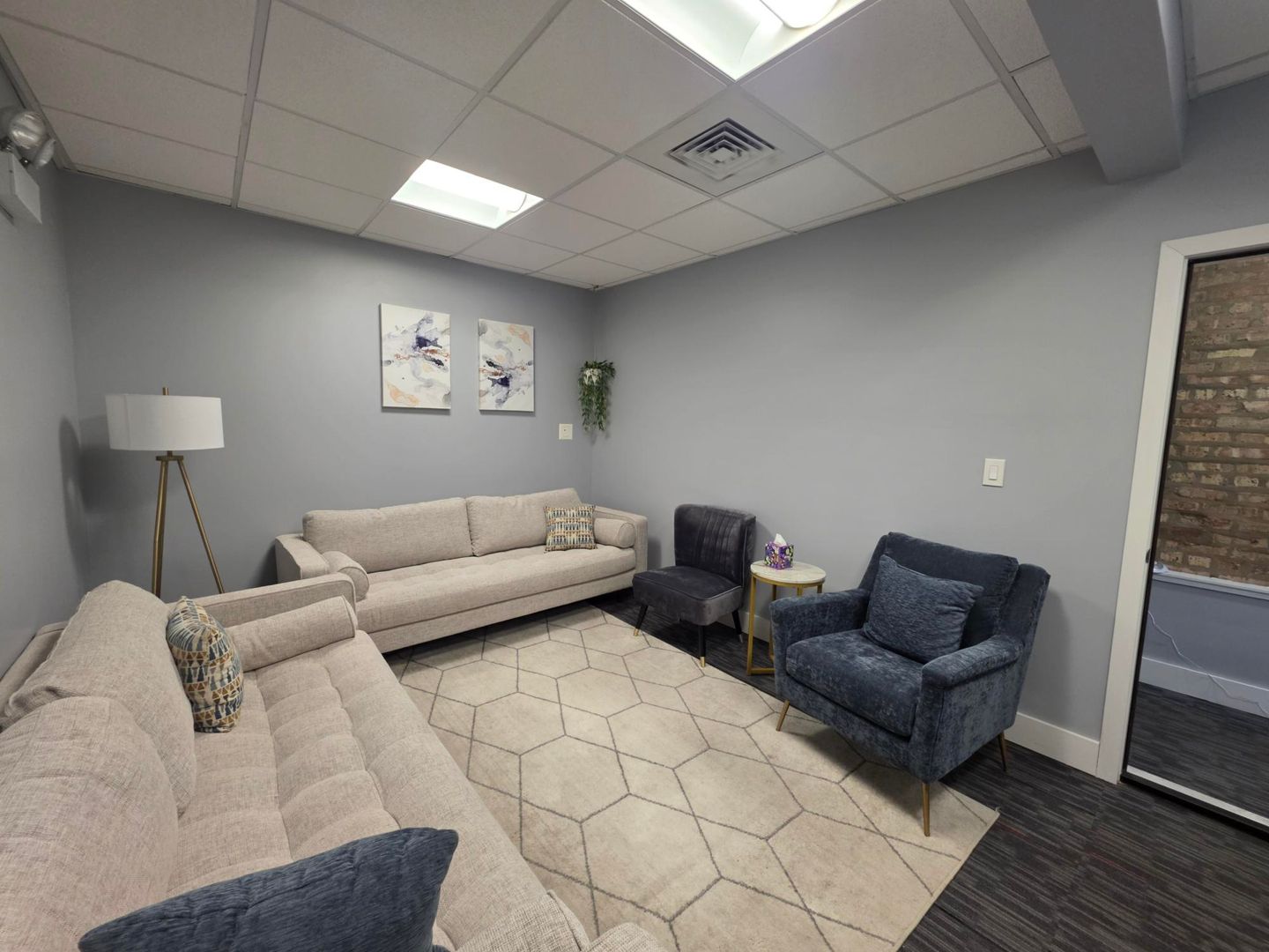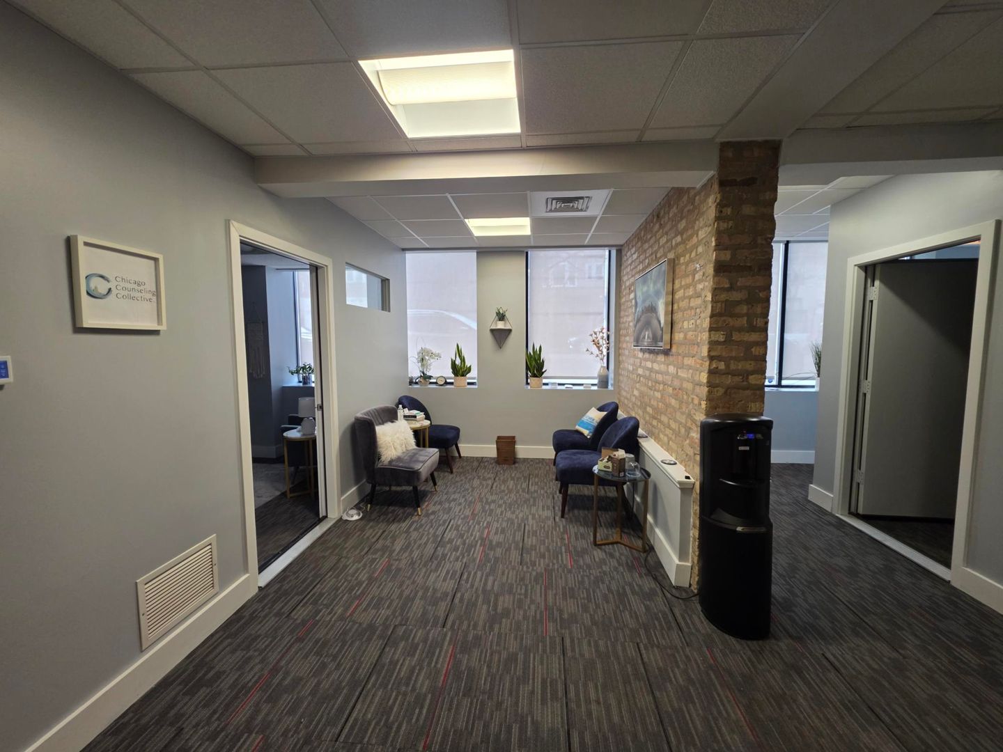 Office space available 3.15.2026 with 3 separate offices and common sitting/waiting area.