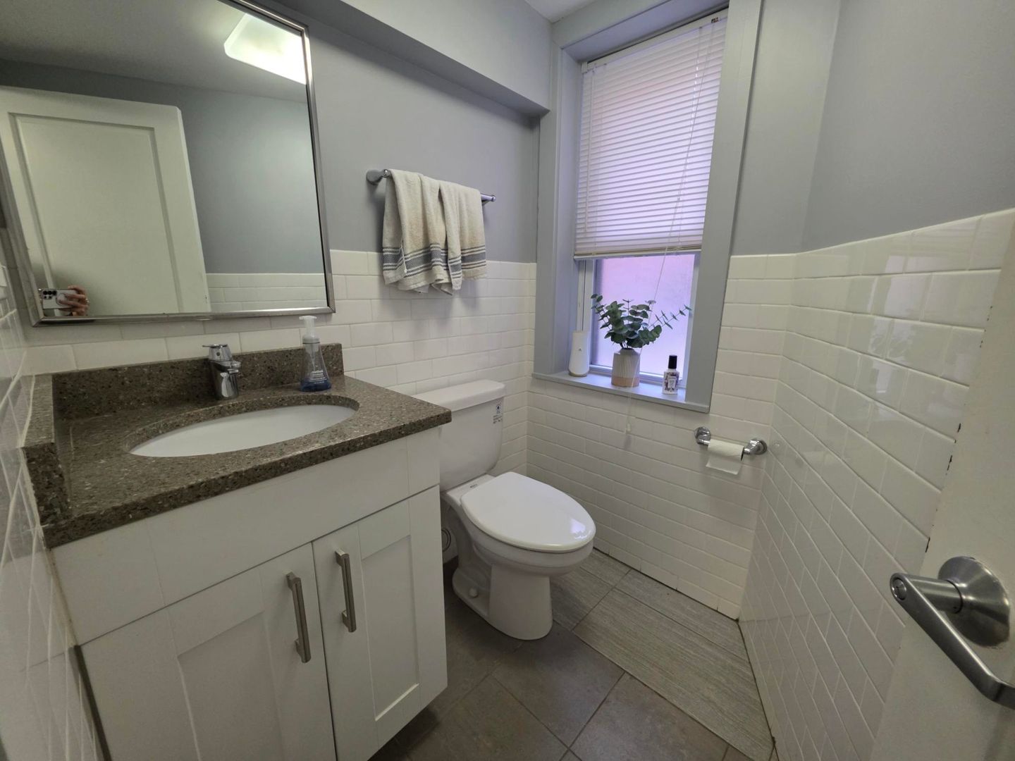Modern carpet tiles and west facing windows