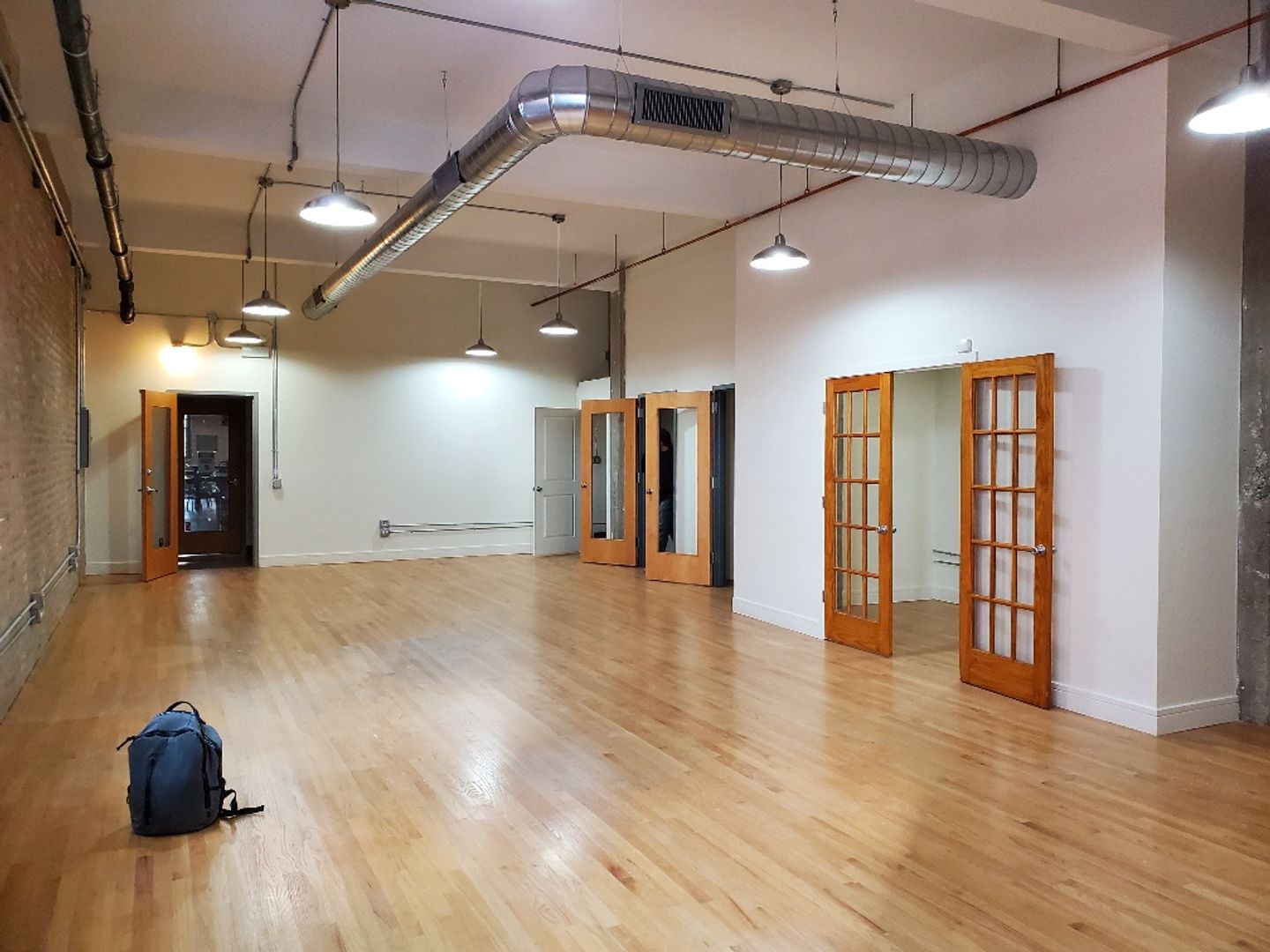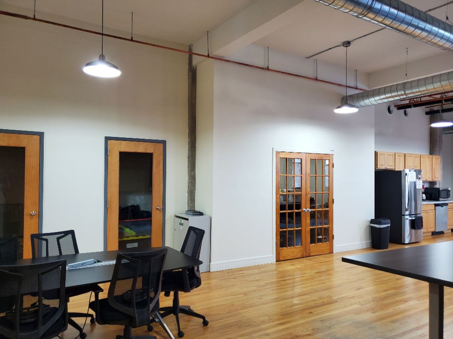 Open floor plan with one private office/conference room + 2 small rooms that served as phone booths