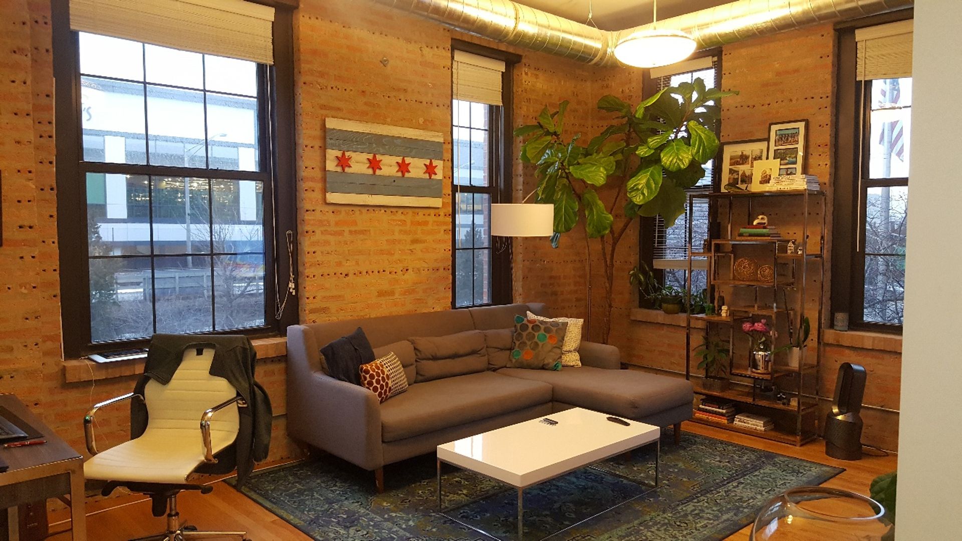 Exposed brick and high ceiling