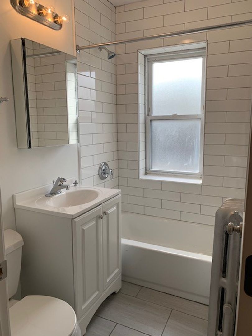 Re-let for January 1st move in. Current lease is through April 30th with option to renew. Renovated 2 bedroom 1 bath with modern finishes, SS appliances, hardwood floors, built in ceiling fans in a pet friendly building (breed restrictions apply). Raised 1st floor apartment which includes both heat and cooking gas, water/sewer and trash. Tenant only pays electric. Tours to be scheduled with the current resident.