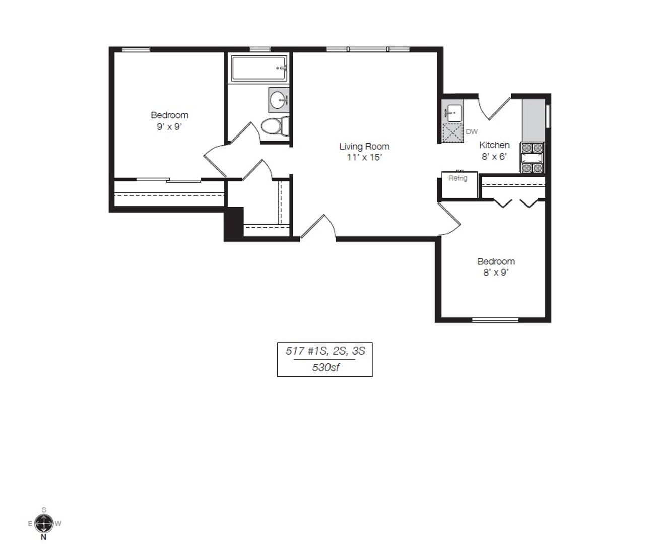 -Stainless steel appliances (fridge, microwave, range, and dishwasher)