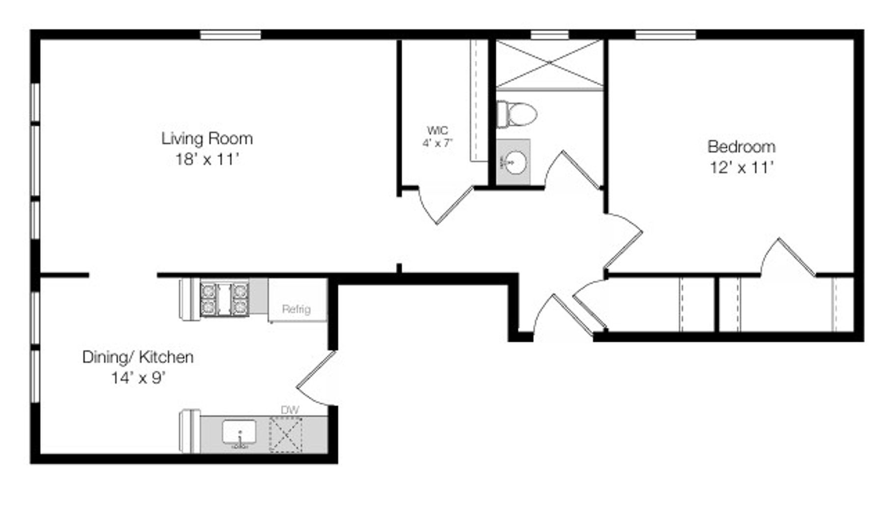 Spacious one bedroom with lots of light. Recently renovated kitchen and bathroom. Separate dining room and living room. Two large walk in closets.